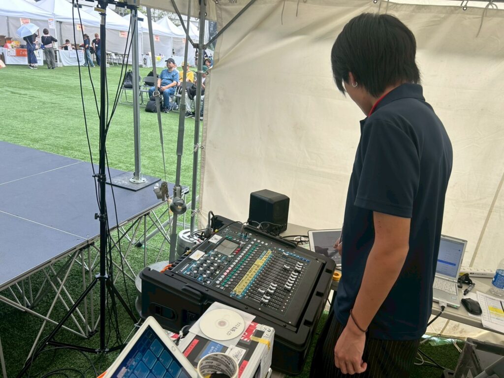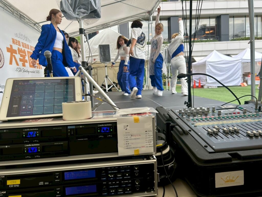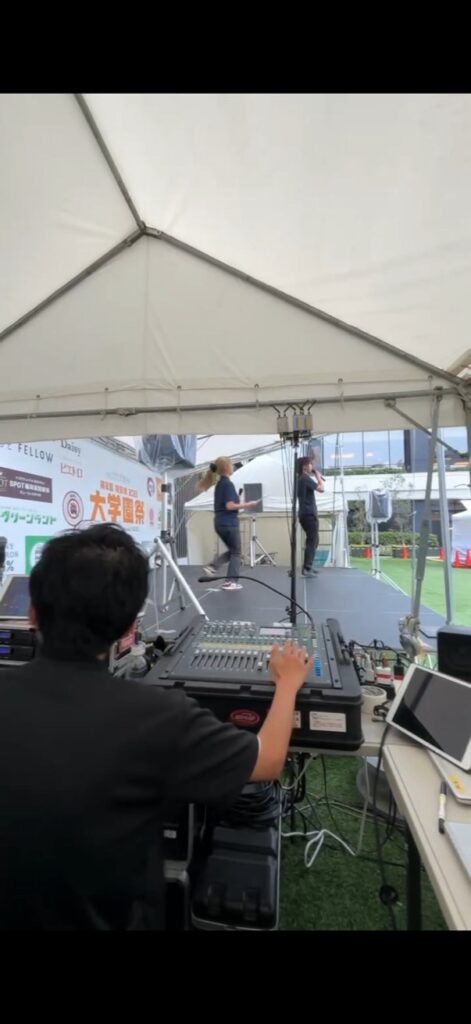 本イベントは弊社代表が、この学生主体の取り組みを支える形でステージ音響の技術サポートを担当。出演者が安心してパフォーマンスできるよう、マイク・BGM・スピーカーの音量バランスを調整し、会場全体にクリアで心地よい音響のお届けをサポートさせて頂きました。
