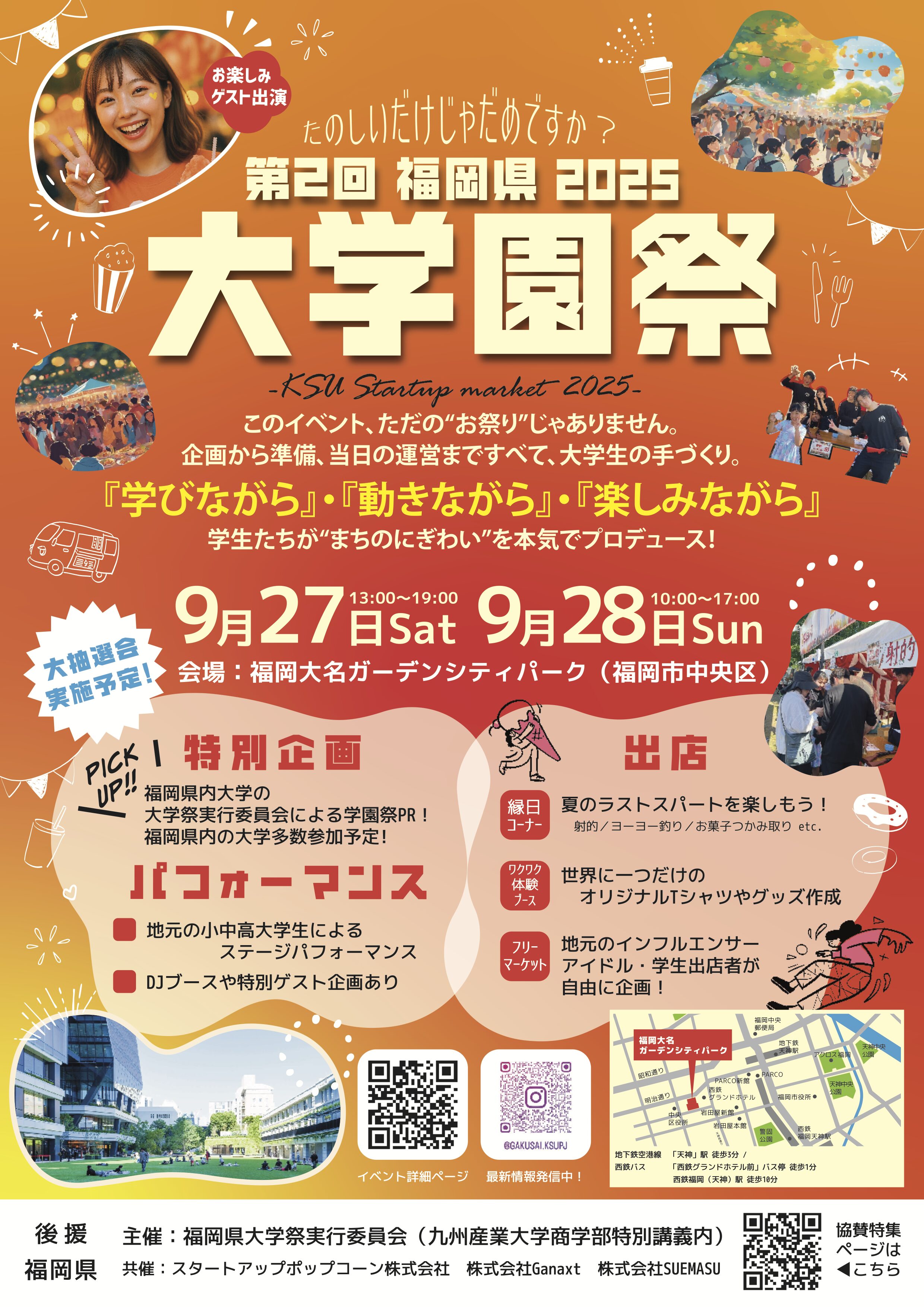 第2回 福岡県大学園祭「KSU Startup Market 2025」の詳しい内容は公式インスタグラムでご確認ください。