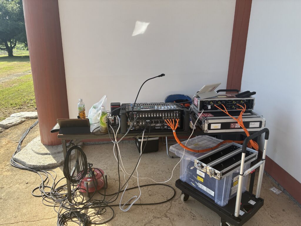 自然環境下でも明瞭で柔らかな音質が全体に届くよう、構成を考えました。(大人の事情で返しモニターは設置出来ませんでした...)