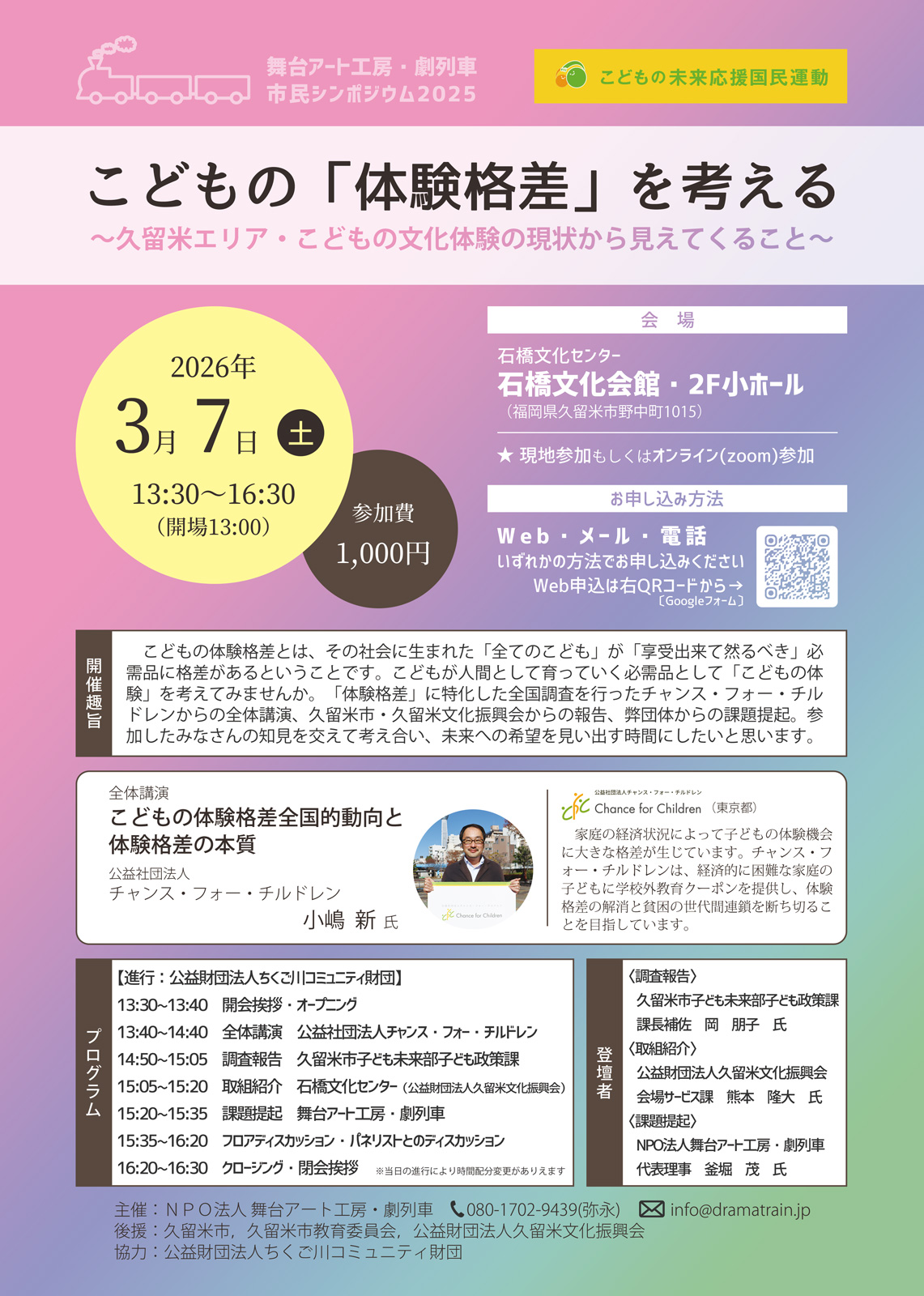 - イベント名:こどもの「体験格差」を考えるシンポジウム